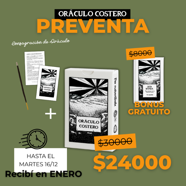 El Oráculo Costero viene en caja cerrada y cuenta con 20 cartas que recorren paisajes, flora y fauna con una mirada ambiental posicionada en el Partido de La Costa. Cuenta, además, con manual de instrucciones para que puedas usarlo como un mazo de consulta. En el manual encontrás el significado de cada carta, realizado con la vinculacíón de su imagen y su numeración, en relación a la numerología pitagórica. La curaduría del manual fue realizada por Daniela Conforti -@tarotbysoydanielaholistica-, tarotista y numeróloga.